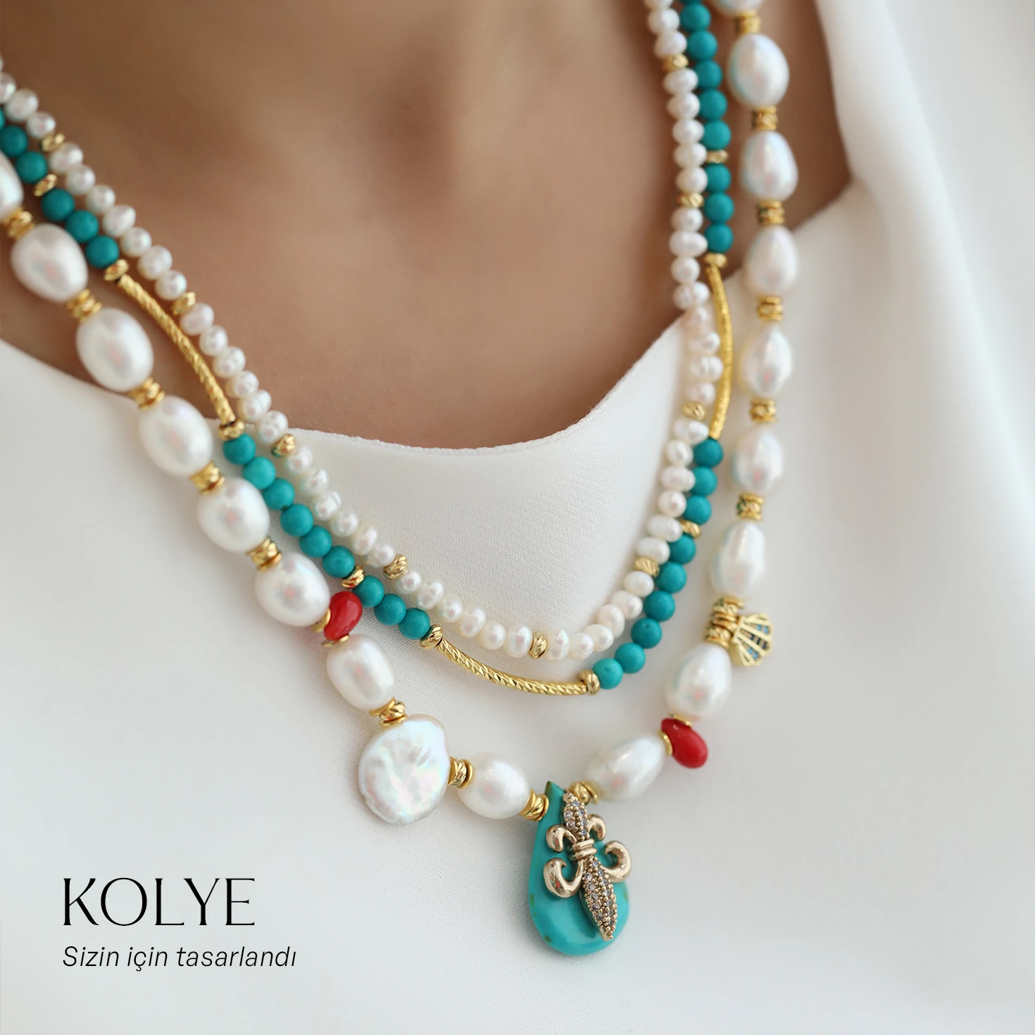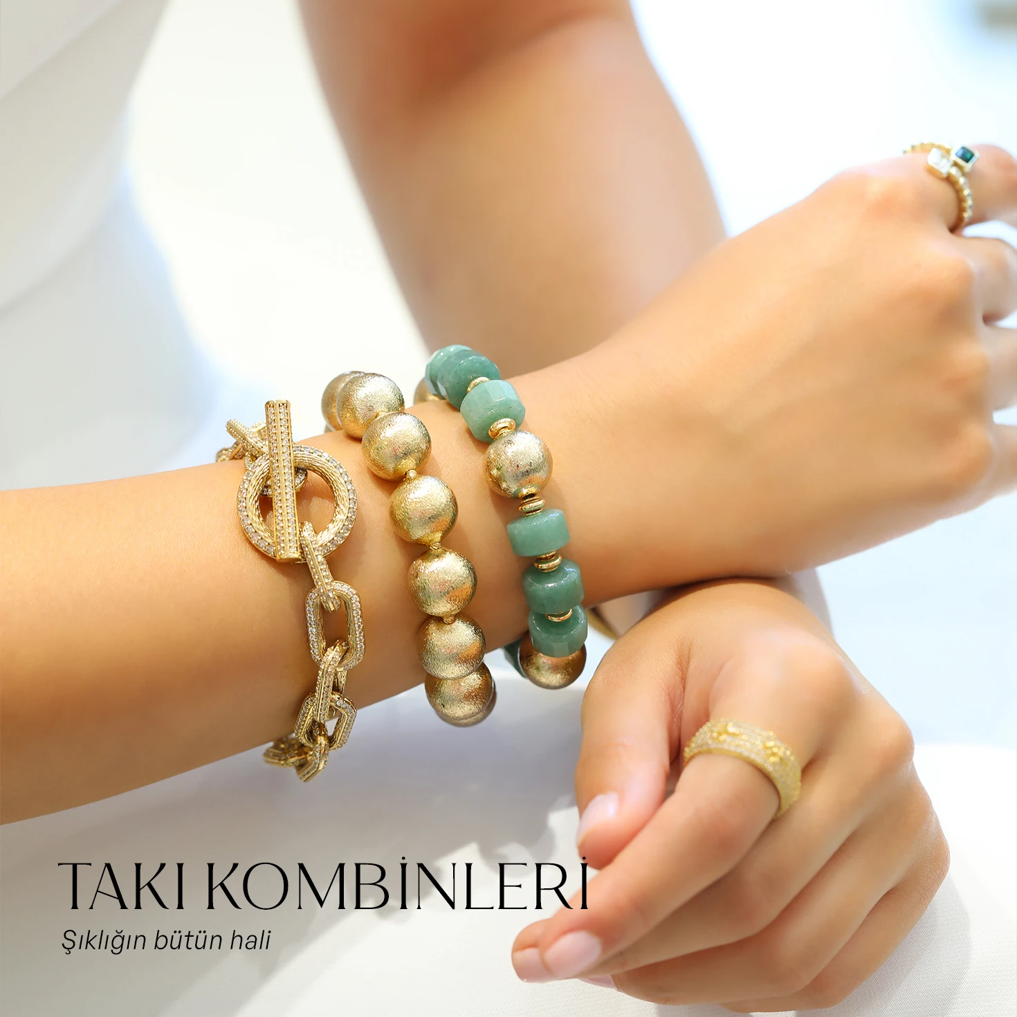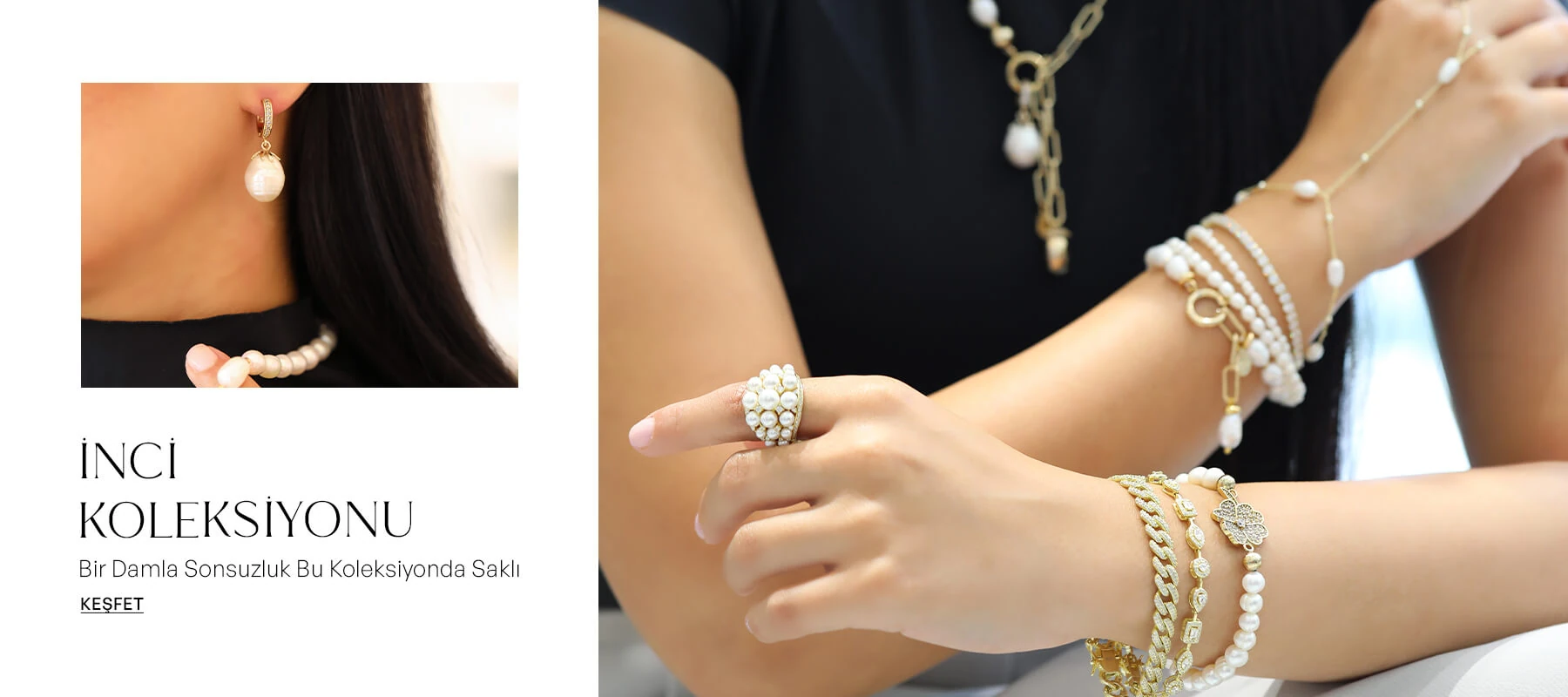 Doğal taş ve inci kolyeler, zincir ve tiffany detaylı tasarımlar, zarif bileklik ve yüzük seçenekleri; hem günlük kullanım hem de özel günler için ideal.