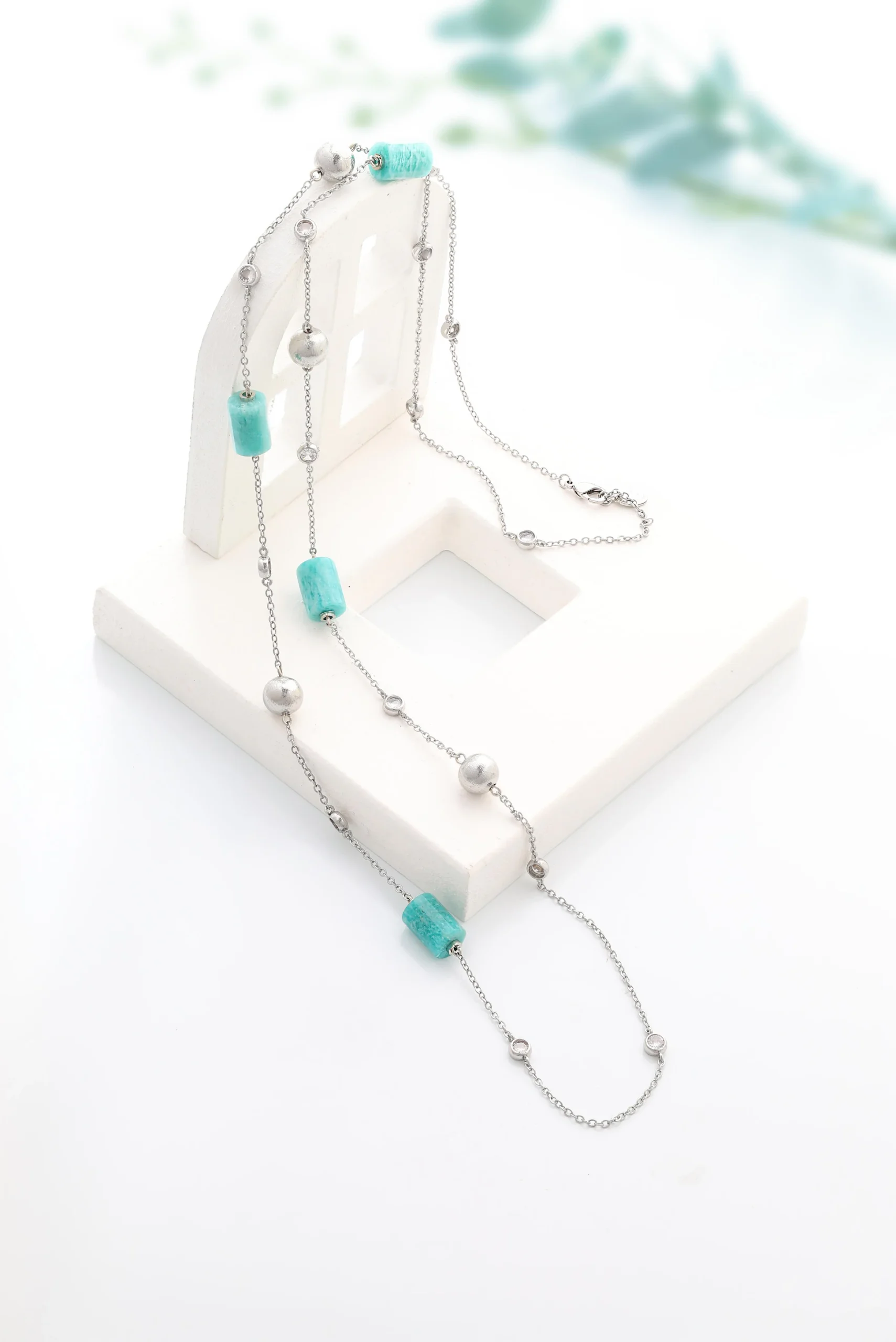 Amazonit Taşı Detaylı Zincir Kolye, zarif zincir tasarımı ve amazonit taşının huzur verici etkisiyle öne çıkar. Amazonit, sakinlik ve denge sağlar, olumsuz enerjilerden arındırarak pozitif bir alan oluşturur.. Şıklığı ve anlamı bir arada taşıyan bu kolye, her anınıza zarif bir dokunuş ve içsel huzur katar.