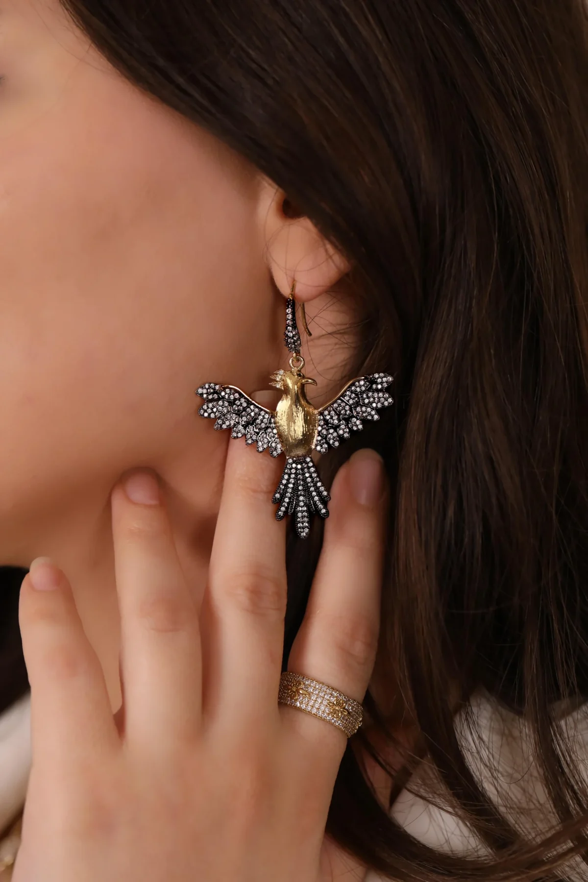 “Anka kuşu, yeniden doğuşun ve sonsuz gücün simgesidir. Bu küpe, her adımda yenilik ve zarafet sunar.”