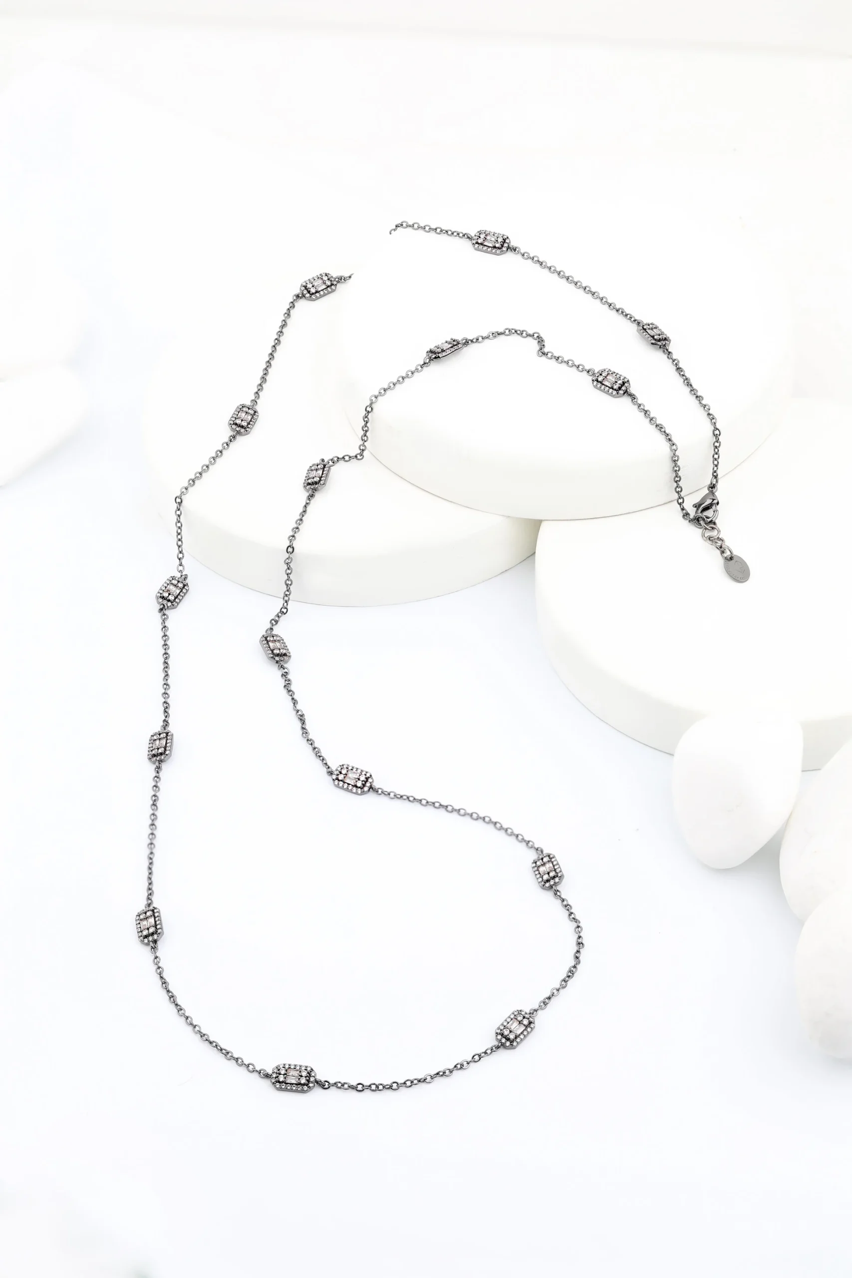Baget Taşlı Tiffany Zincir Rodyum