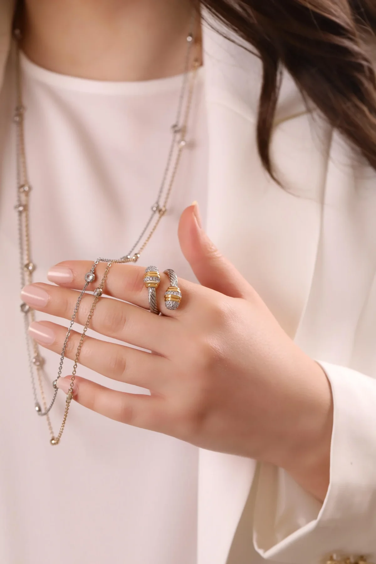 “Işıltınız her adımda parlasın: Taşlı yüzük. Zarif taşların ışıltısı, stilinize sofistike bir dokunuş katarken, her anınızı daha özel kılıyor. Şıklığı ve zarafeti bir arada sunan bu yüzük, size benzersiz bir ışıltı katacak.”