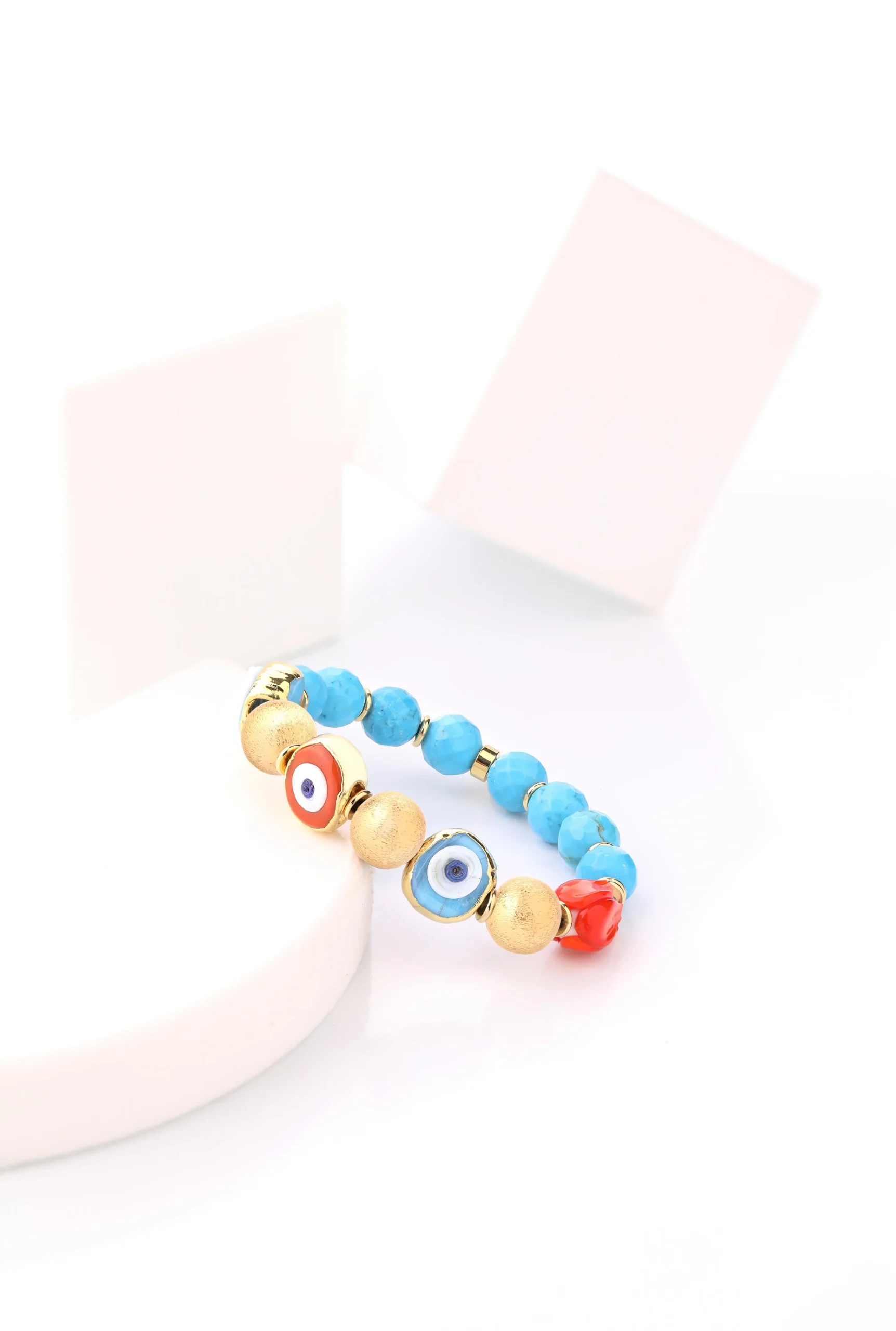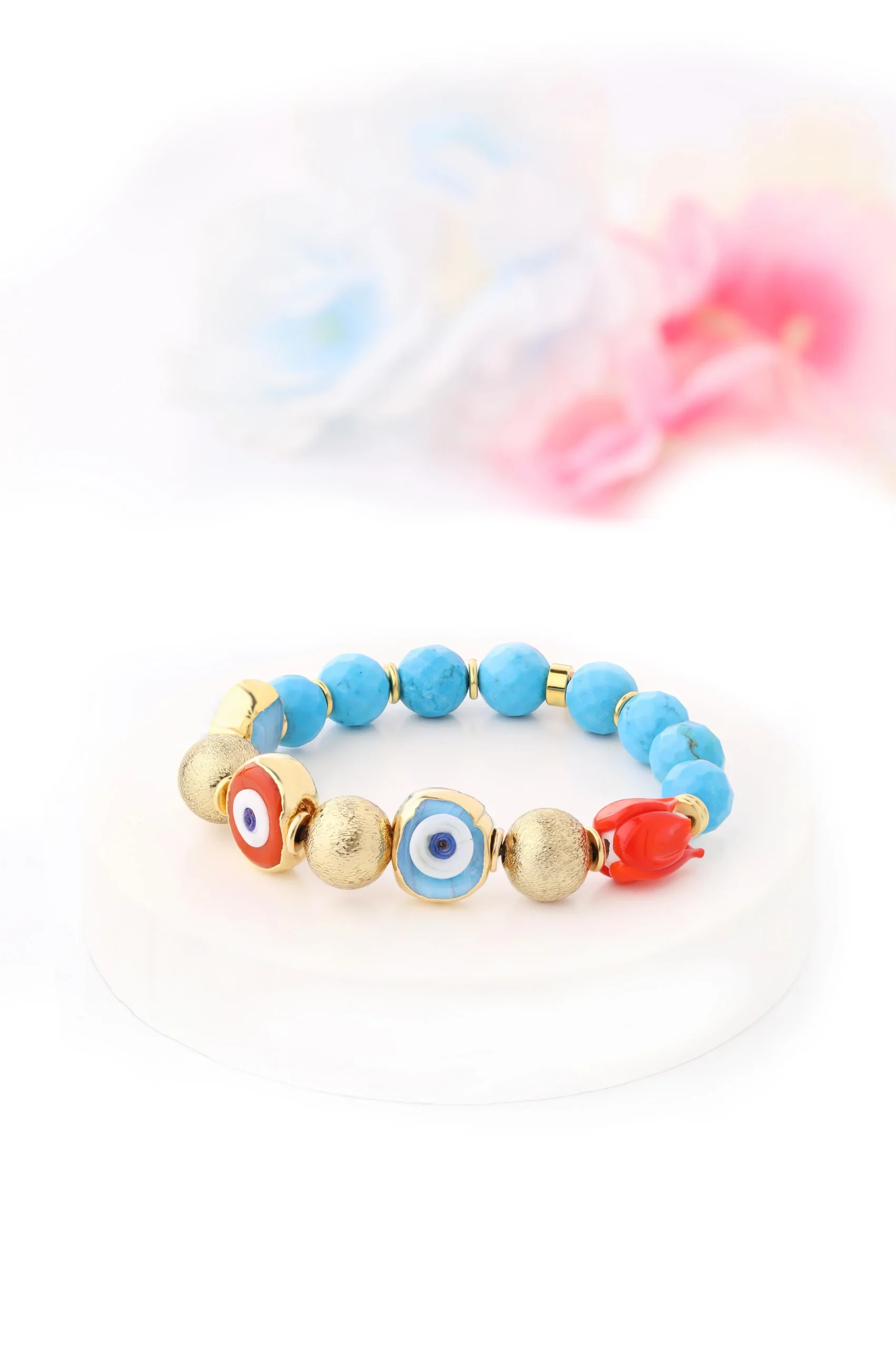 - Kullanılan nazar boncukları el yapımı camdır.