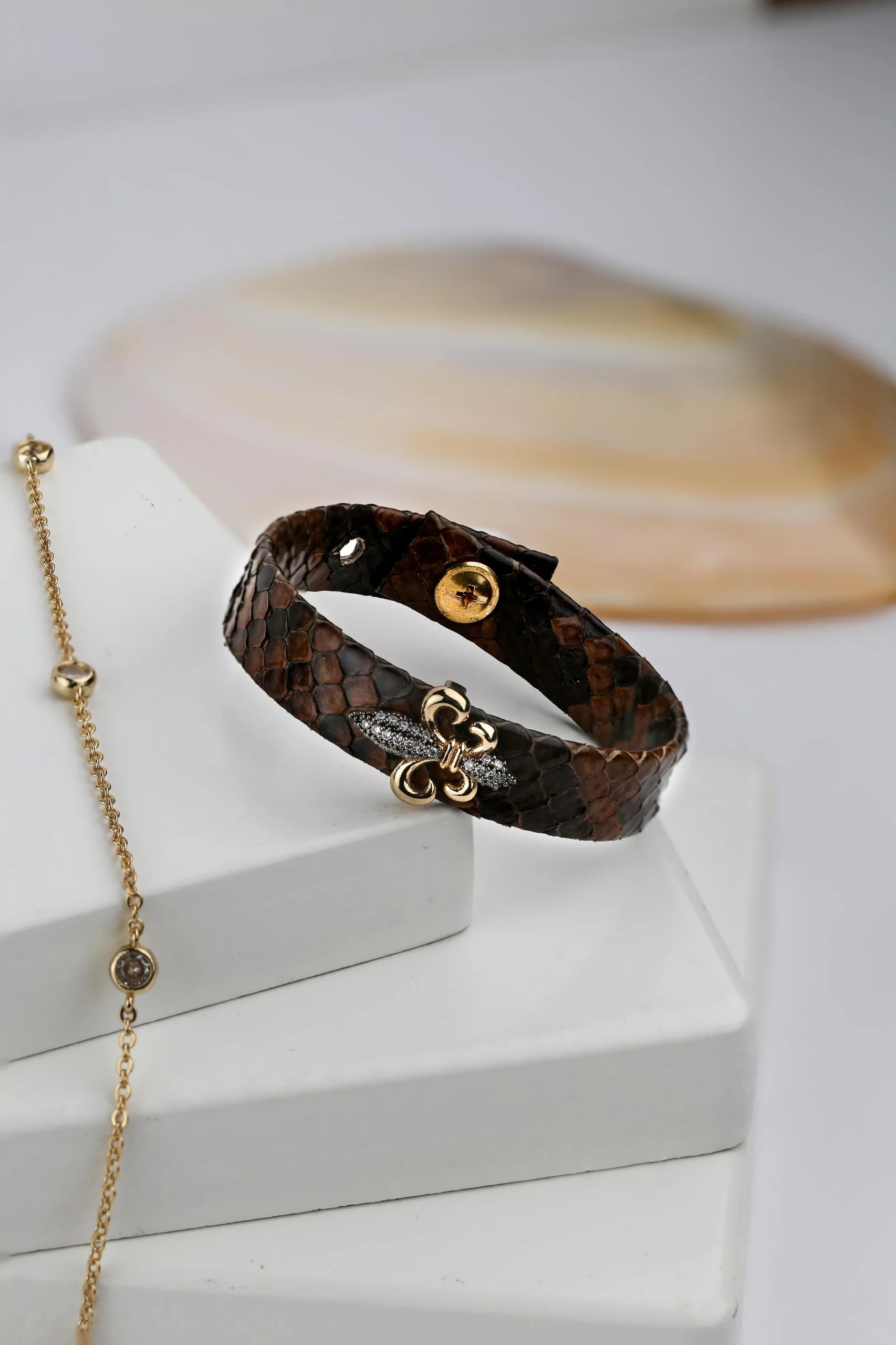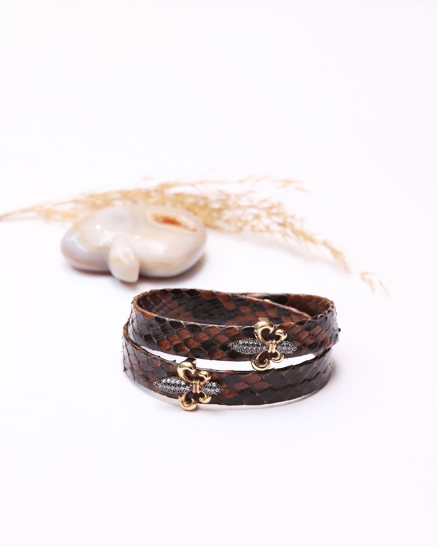 Kahverengi Dolamalı Deri Bileklik