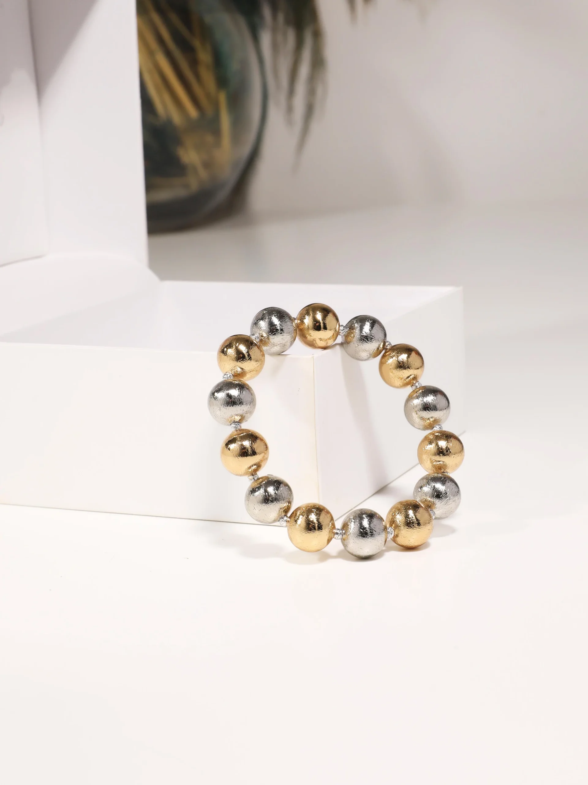 “Gold ve gümüş renklerinin zarif birleşimiyle tasarlanmış bu top bileklik, şıklığınızı tamamlayacak en özel parçalardan biri. Hem günlük kombinlerinize hem de özel anlarınıza uyum sağlayarak, modern ve zarif bir tarz oluşturur.. İki rengin uyumunu takılarınızda hissedin!”