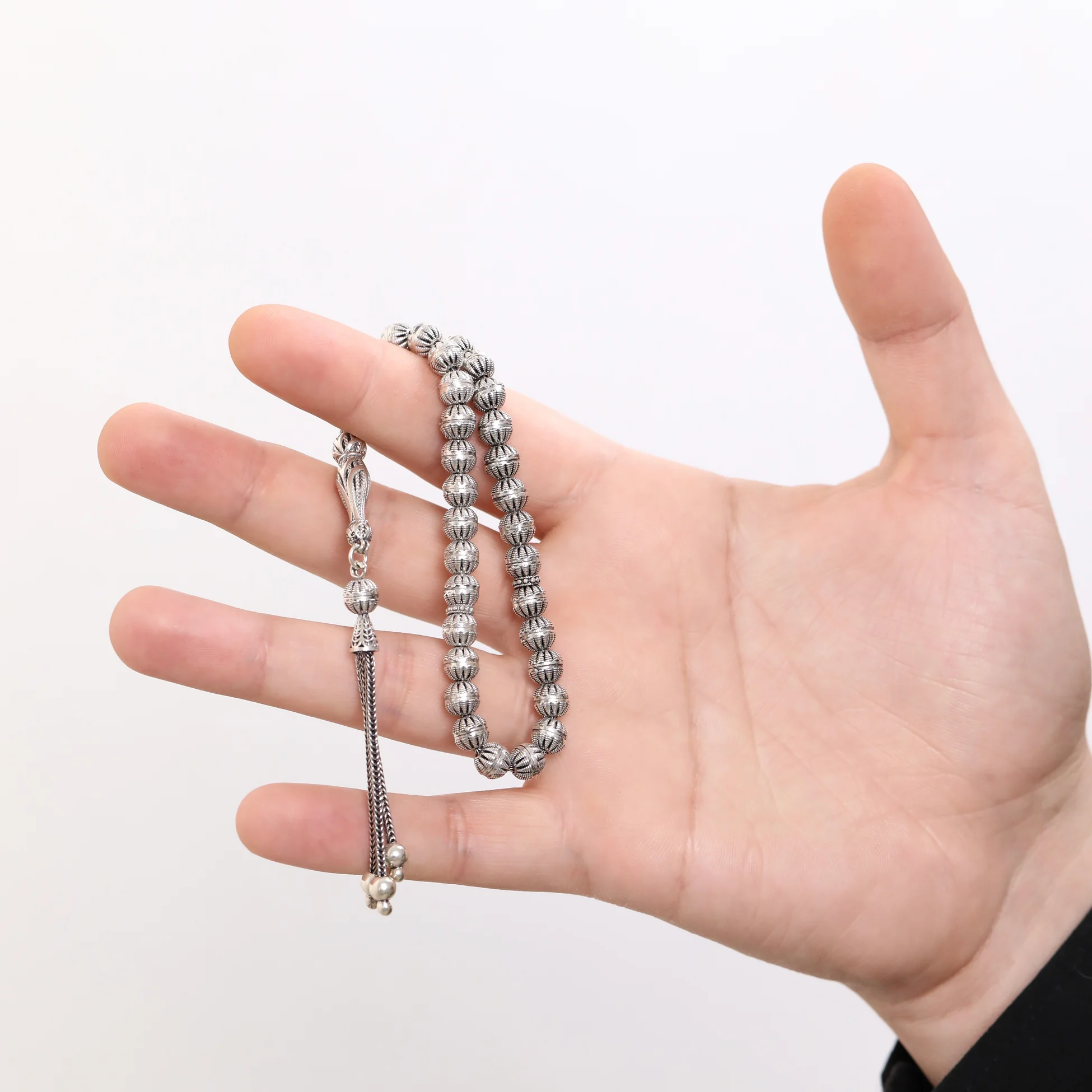 Gümüşün asaleti, tespihin manevi değerini daha da güçlü kılarak hem günlük kullanım hem de özel anlar için ideal bir tercih sunar. Koleksiyonluk değeri taşıyan bu özel parça; babaya, eşe, dostlara veya kendinize alınabilecek anlamlı ve kalıcı bir hediyedir.