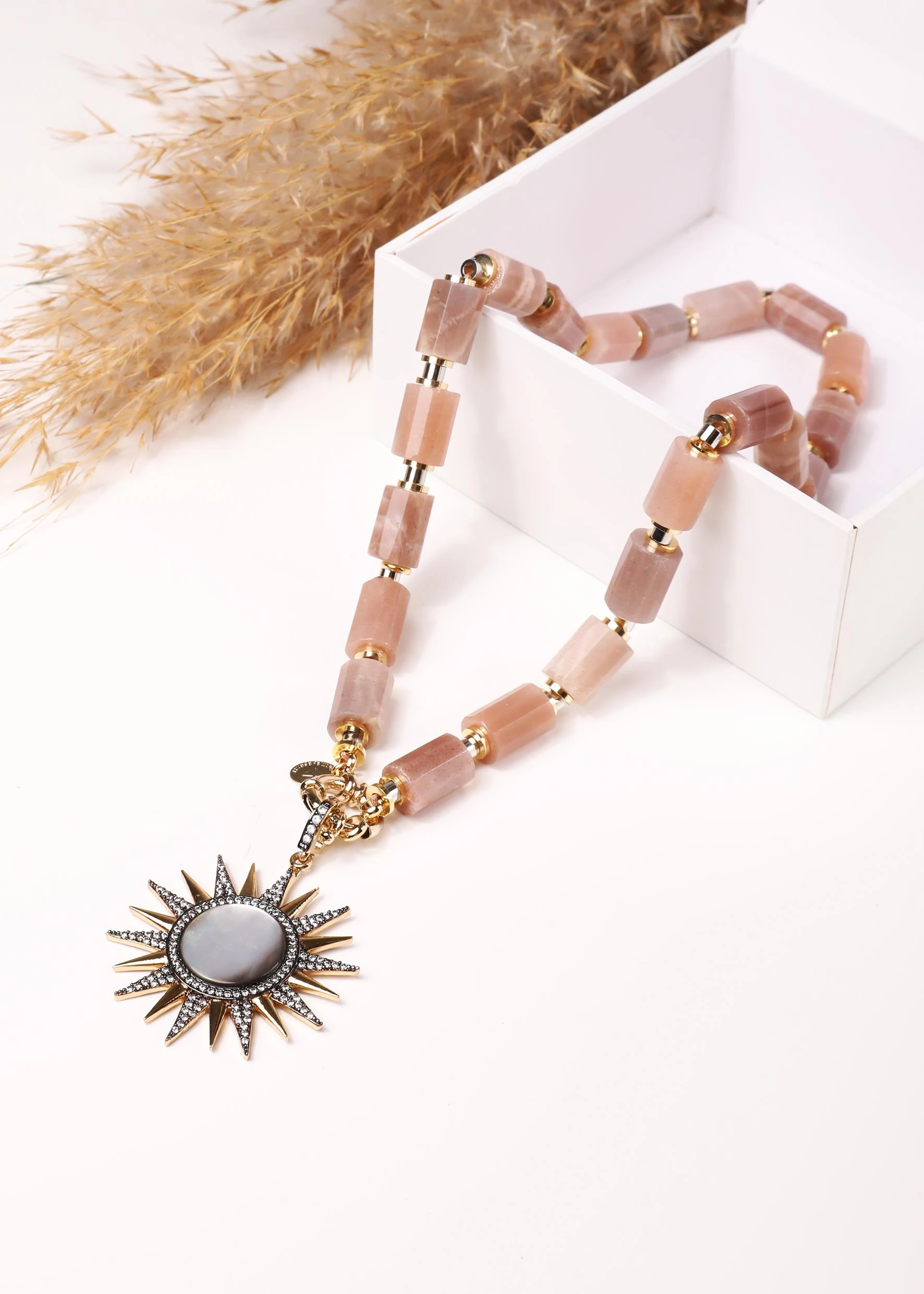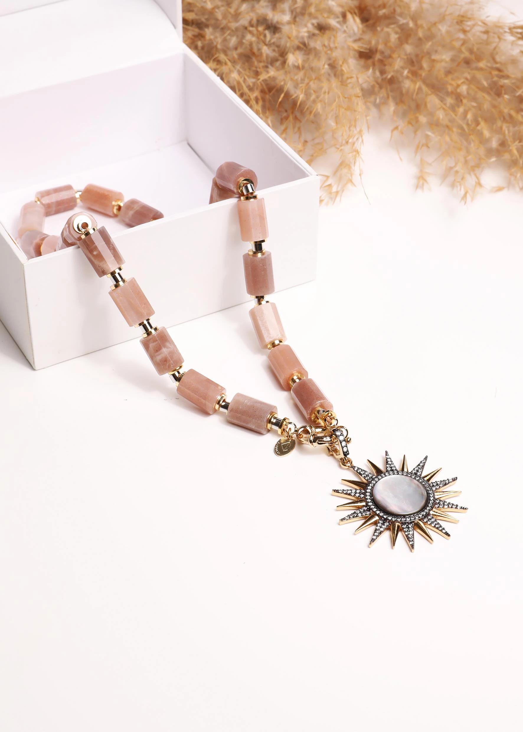 Güneş Uçlu Güneş Taşı Kolye, doğanın en parlak enerjisini zarif bir şekilde boynunuzda taşır. Güneş taşı, pozitif enerjiyi artırarak ruh halinizi yükseltir ve güneş figürüyle birleşerek her anınıza ışıltı katar. Hem anlamlı hem de şık bu kolye, tarzınıza enerjik ve canlı bir dokunuş ekler..