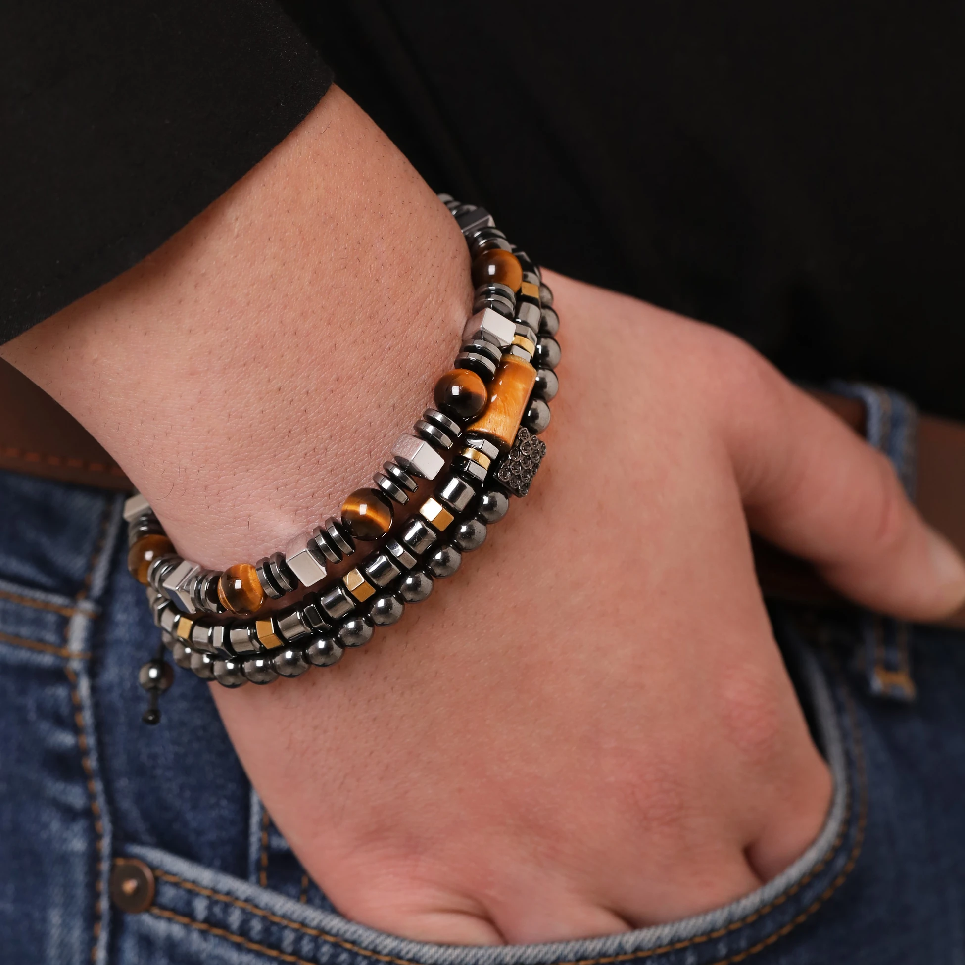 Maskülen duruşu ve modern çizgisiyle öne çıkan hematit taşı erkek bileklik, bileğinde sade ama güçlü bir etki bırakır. Gri tonların verdiği sofistike görünüm, stilini abartıya kaçmadan tamamlar ve her ortamda fark edilmeni sağlar. Detaylara önem veren, net ve kendinden emin bir tarzı yansıtan bu bileklik; günlük kombinlerden özel anlara kadar güçlü bir imza gibi eşlik eder, karakterini sessizce ortaya koyar.