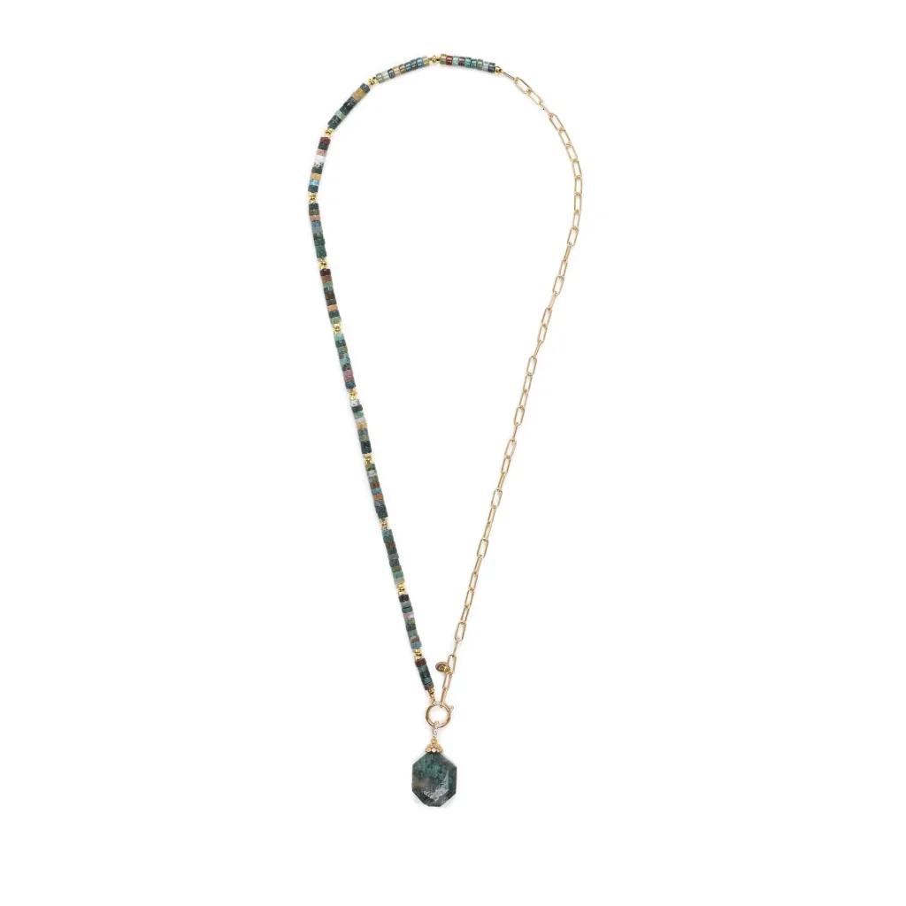 Yeniden doğuşun ve saflığın simgesi lotus çiçeği, denge ve güç taşı olarak bilinen hematit ile bu özel kolyede buluşuyor. Negatif enerjiyi dengelediğine inanılan hematit taşı, sade ve güçlü duruşuyla dikkat çekerken; lotus ucu kolyeye derin bir anlam katıyor. Hem ruhsal hem estetik bir bütünlük sunan bu kolye, günlük stilinize anlamlı bir dokunuş eklemek isteyenler için özenle tasarlandı.