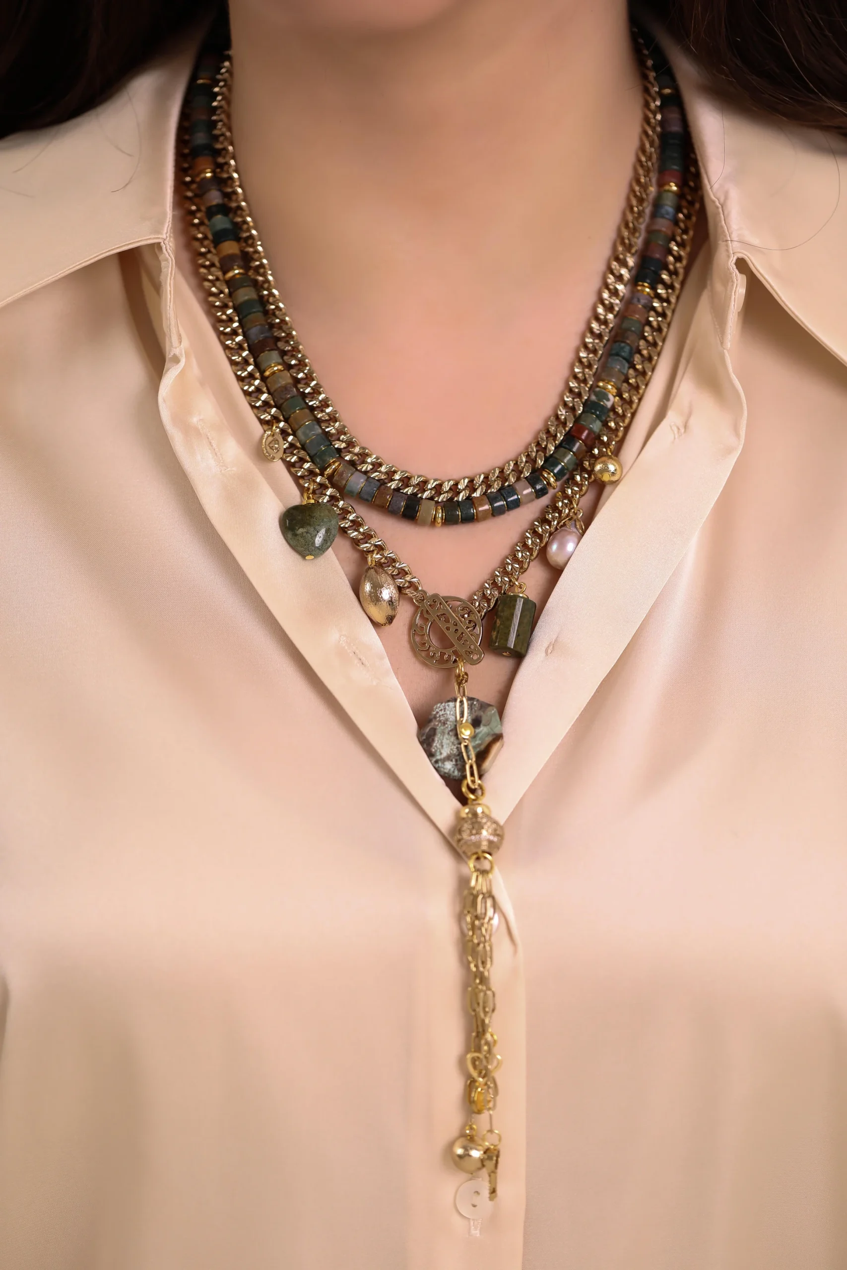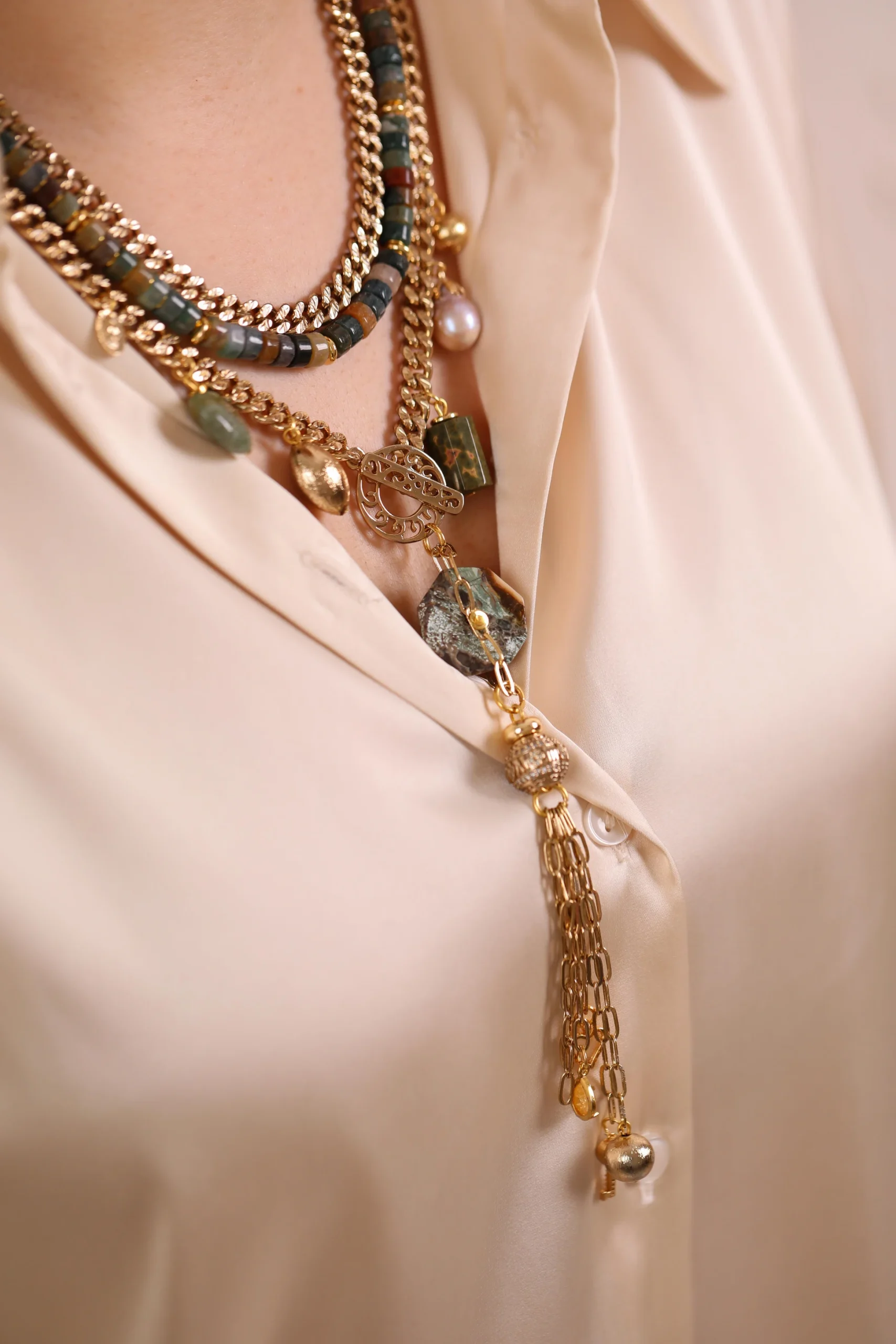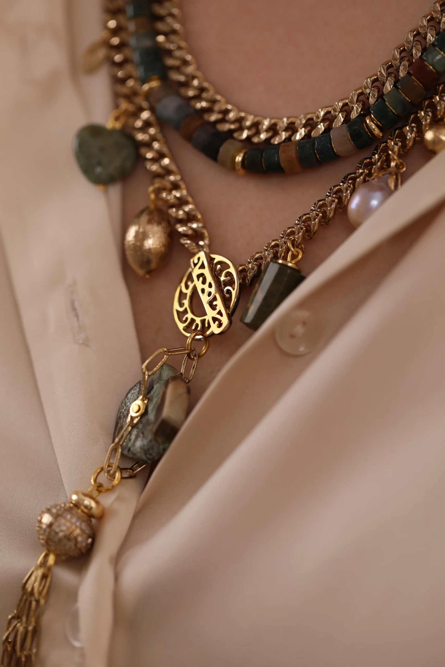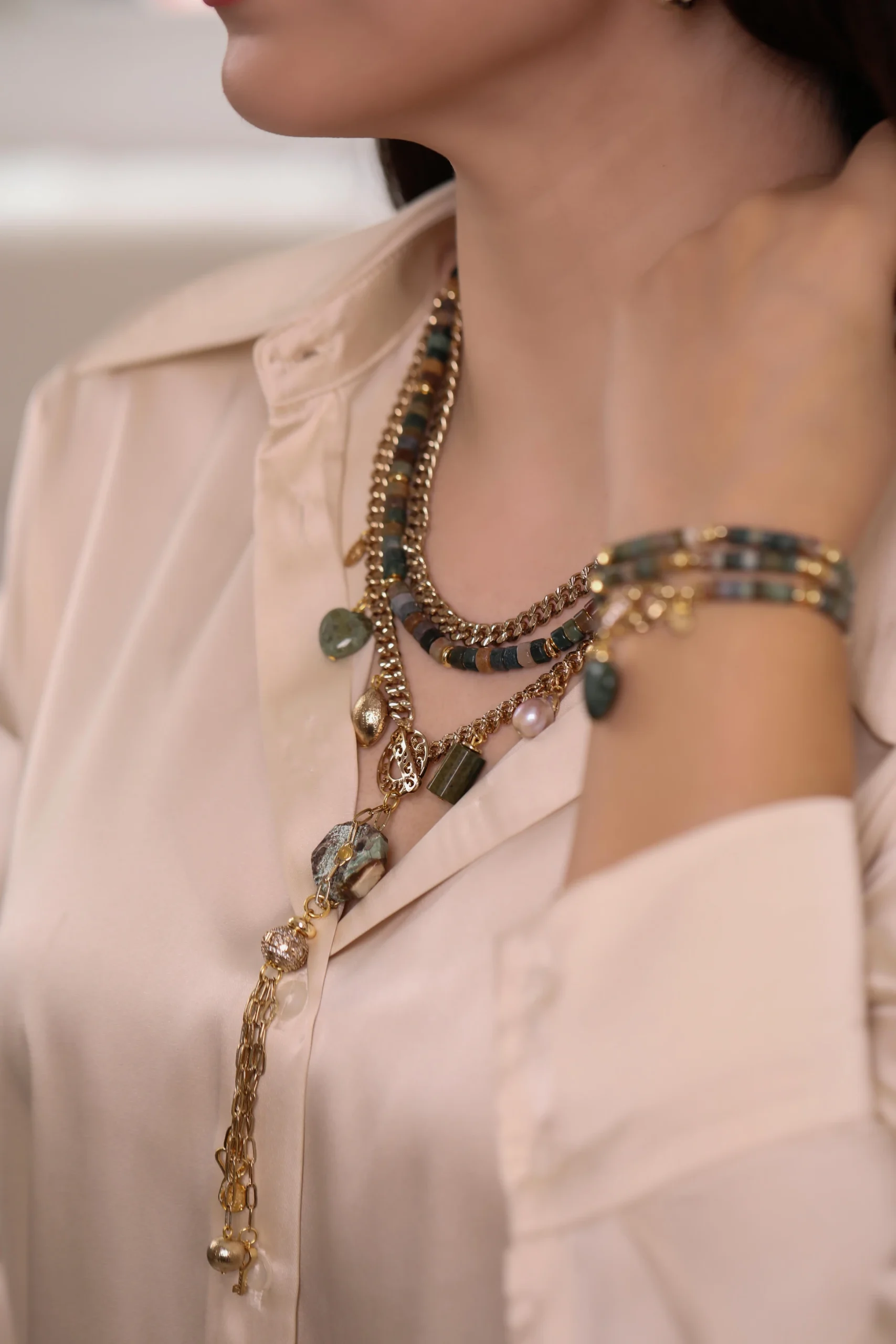 “Doğanın zarafetiyle buluşun: Hermes kolye. Her bir taşın benzersiz enerjisi, modern zincir tasarımıyla birleşerek stilinize anlam katar. Doğal taşların ışıltısı ve şıklığı, her anınıza zarif bir dokunuş ekler. Hem günlük kullanımda hem de özel anlarda şıklığınızı tamamlar..“