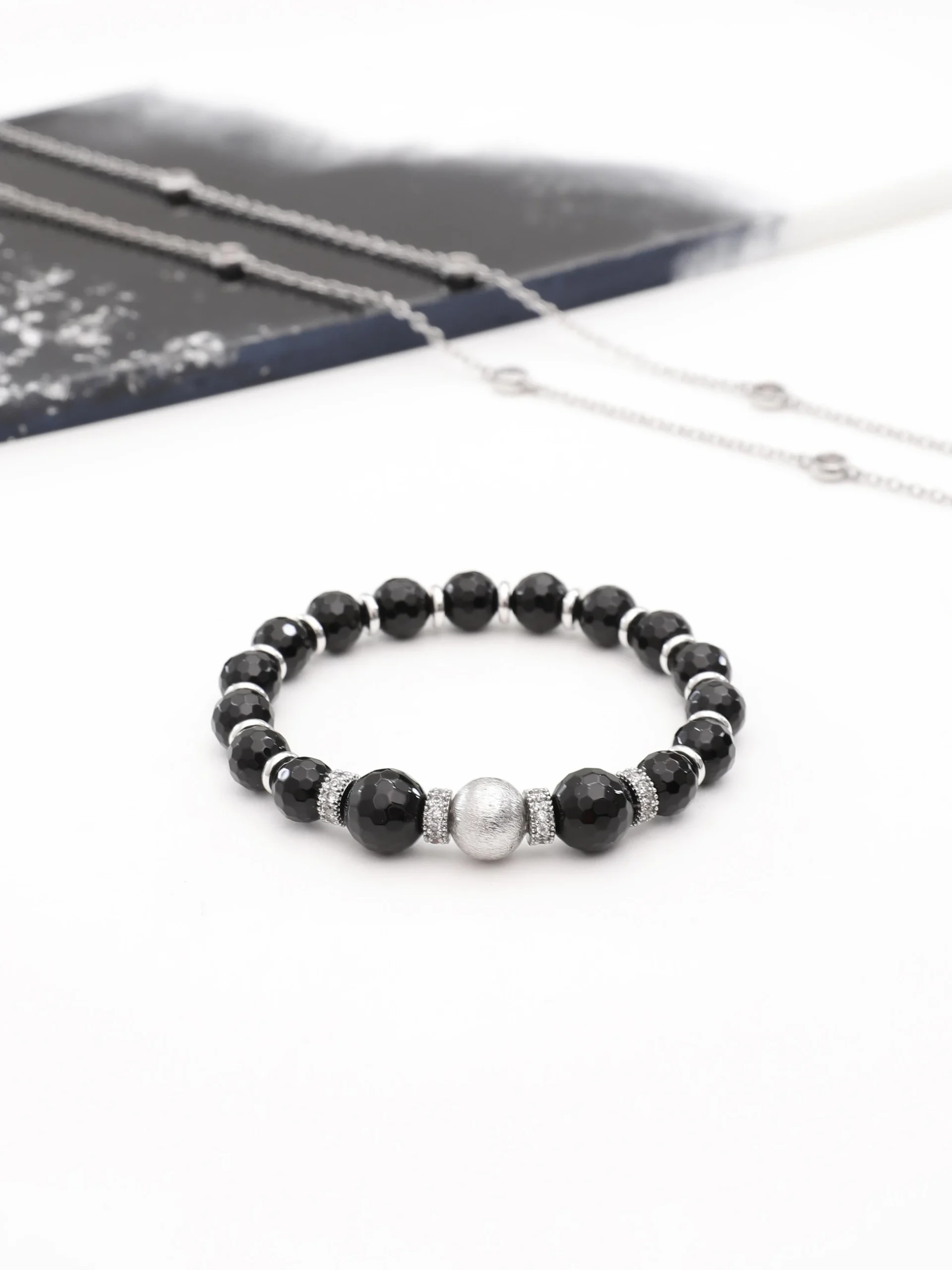 Oniks taşı bileklik, zarafeti ve gücü bir arada sunuyor. Derin siyah tonlarıyla her tarzla uyum sağlayan bu bileklik, hem şıklığı hem de dengeyi simgeliyor. Oniks taşı, negatif enerjiden arındırarak size içsel huzur ve güçlü bir odaklanma sağlıyor. Kendi yolculuğunuzda güçlü adımlar atmak için oniksin gücünü hissedin!