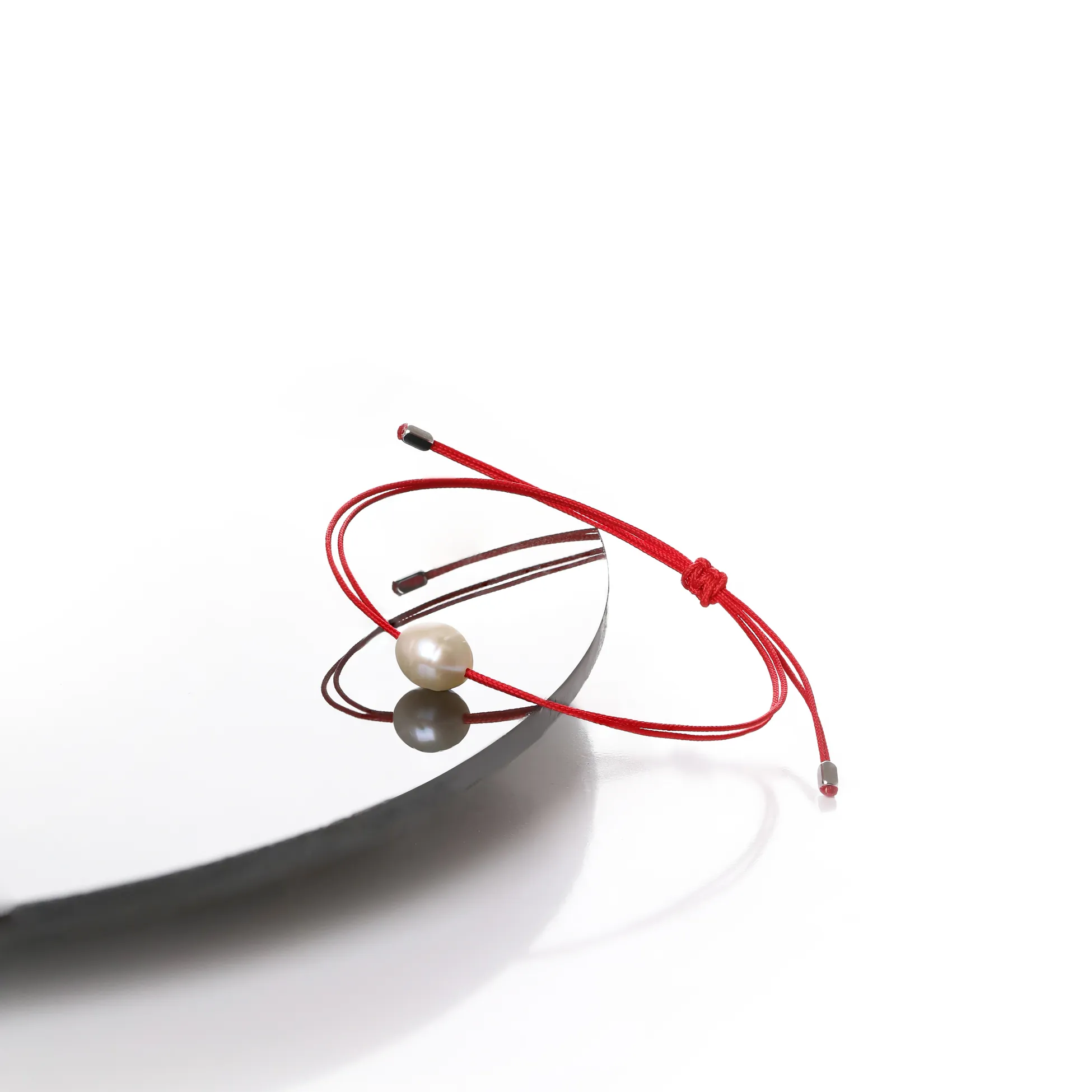 Minimal tasarımıyla dikkat çeken bu bileklik, bir adet doğal inci ve kırmızı ipin güçlü sembolizmini modern çizgilerde buluşturuyor. İnci, yüzyıllardır sadelik, zarafet ve içsel güçle özdeşleştirilirken, kırmızı ip ise enerjiyi, tutkuyu ve koruyucu etkisini temsil eder.