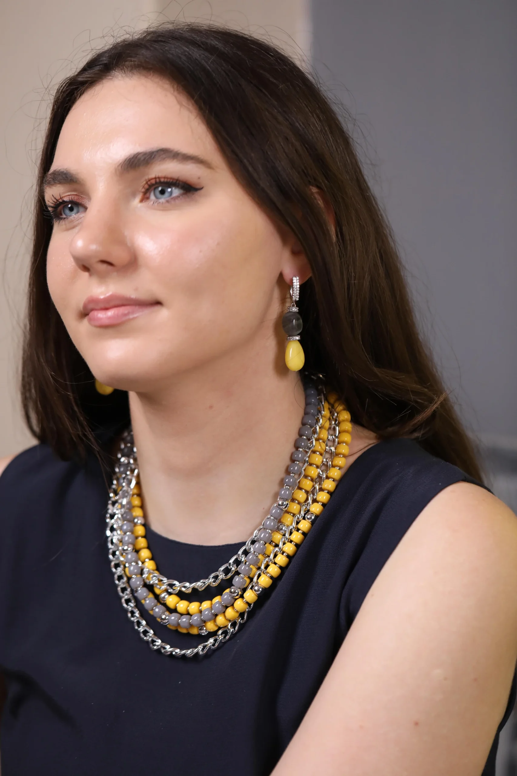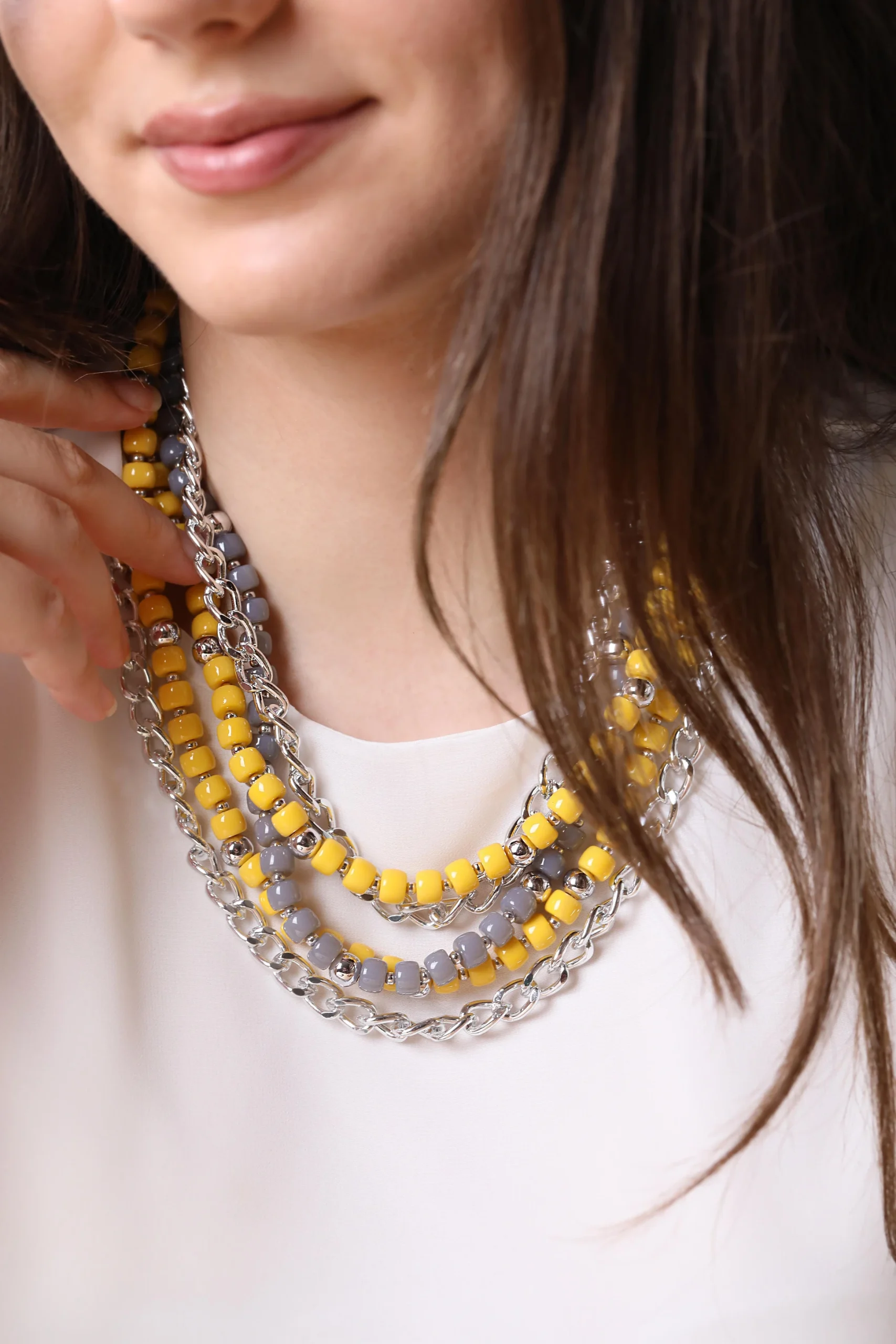 Sarı Zincir Detaylı Kolye, enerjik sarı rengiyle stilinize parlaklık katar. İnce zincir detayları, modern bir dokunuş sunarken, sarının sıcak tonları her anınıza canlılık ve pozitif bir hava ekler. Hem şıklığı hem de enerjisiyle dikkat çeken bu kolye, her kombinle uyum sağlar..