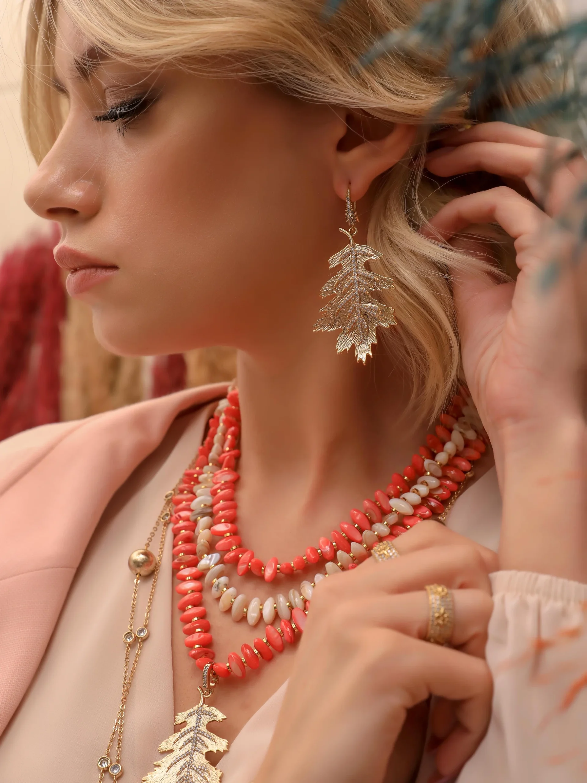 Doğanın zarif güzelliklerini stilinize taşıyın. Sedef taşının yumuşak ışıltısı ve yaprak figürünün şıklığı, her anınıza doğal bir zarafet katar. Hem modern hem de anlamlı bir dokunuş arayanlar için mükemmel bir seçim..