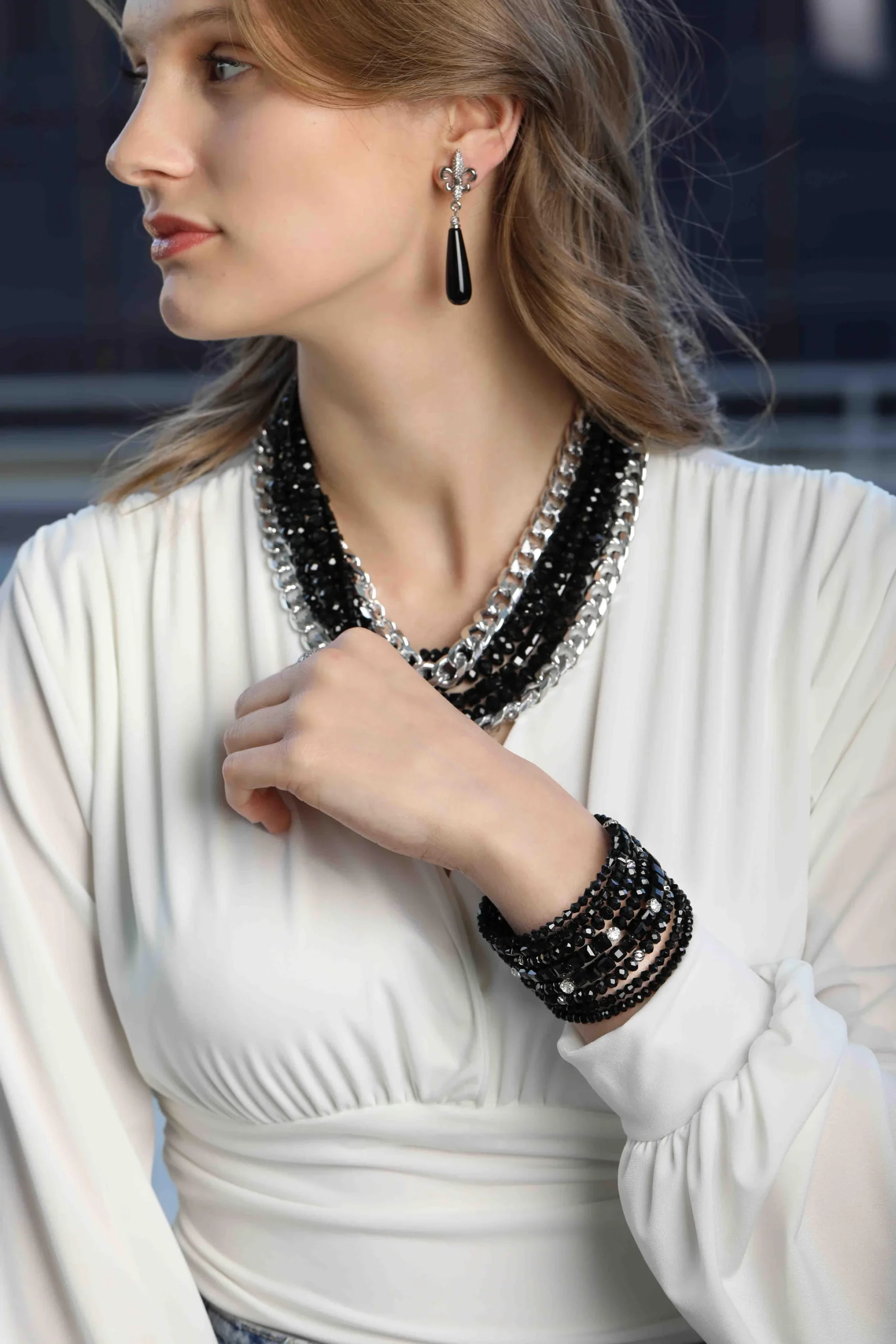 “Sonsuz zarafet, parlak siyah kristalle buluşuyor. Siyah kristal kolye, gizemli ışıltısı ve şıklığıyla her tarzı tamamlayan mükemmel bir aksesuar. Hem cesur hem de zarif olan bu kolye, tarzınızı yansıtırken güçlü bir etki bırakır.”