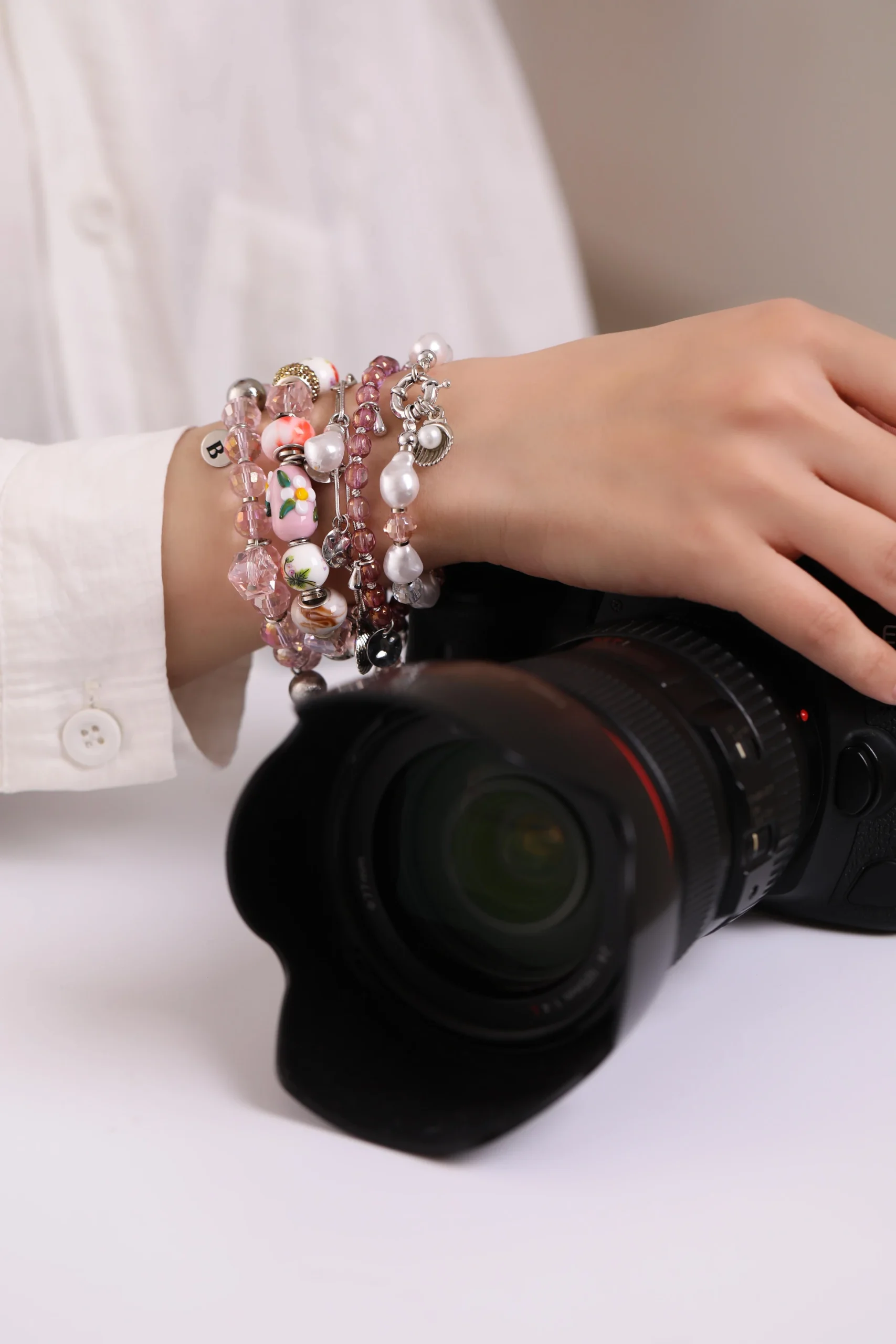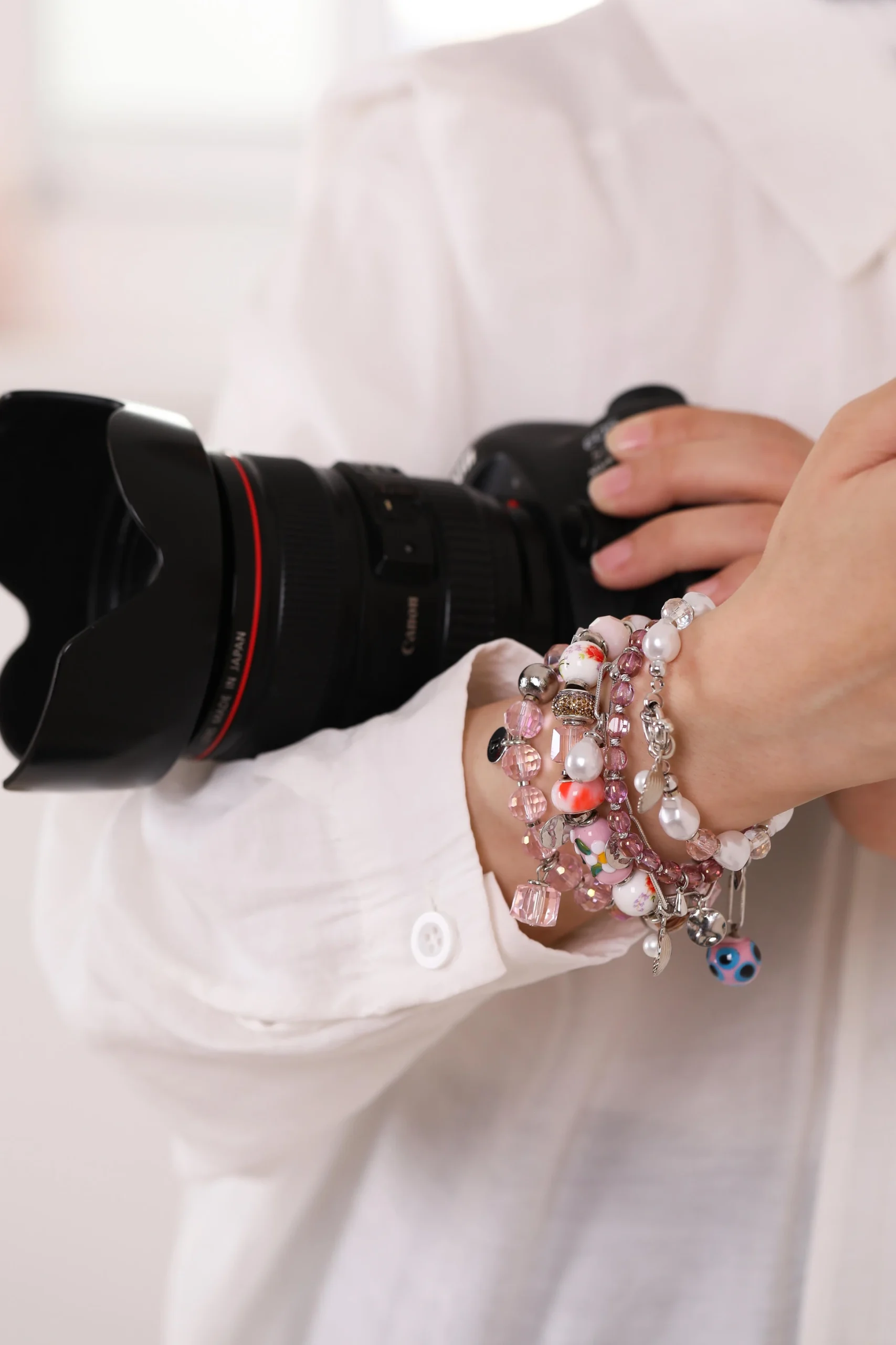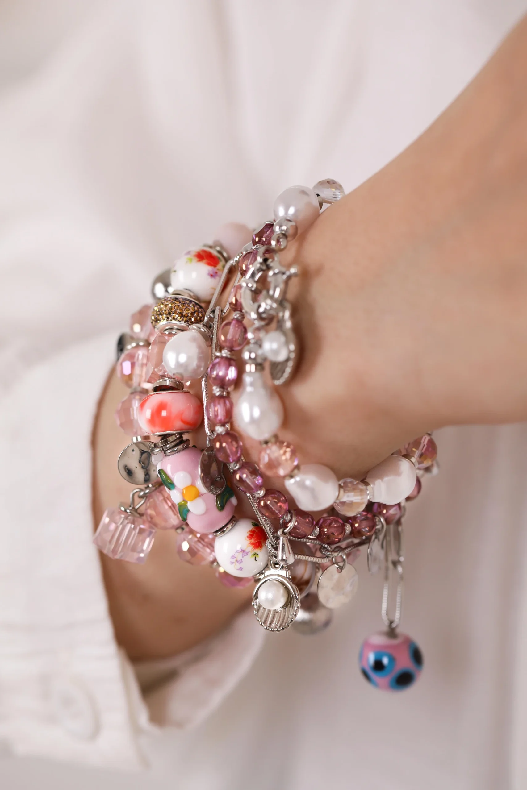- Murano cam çek kristali ve polyester inci kullanılmıştır