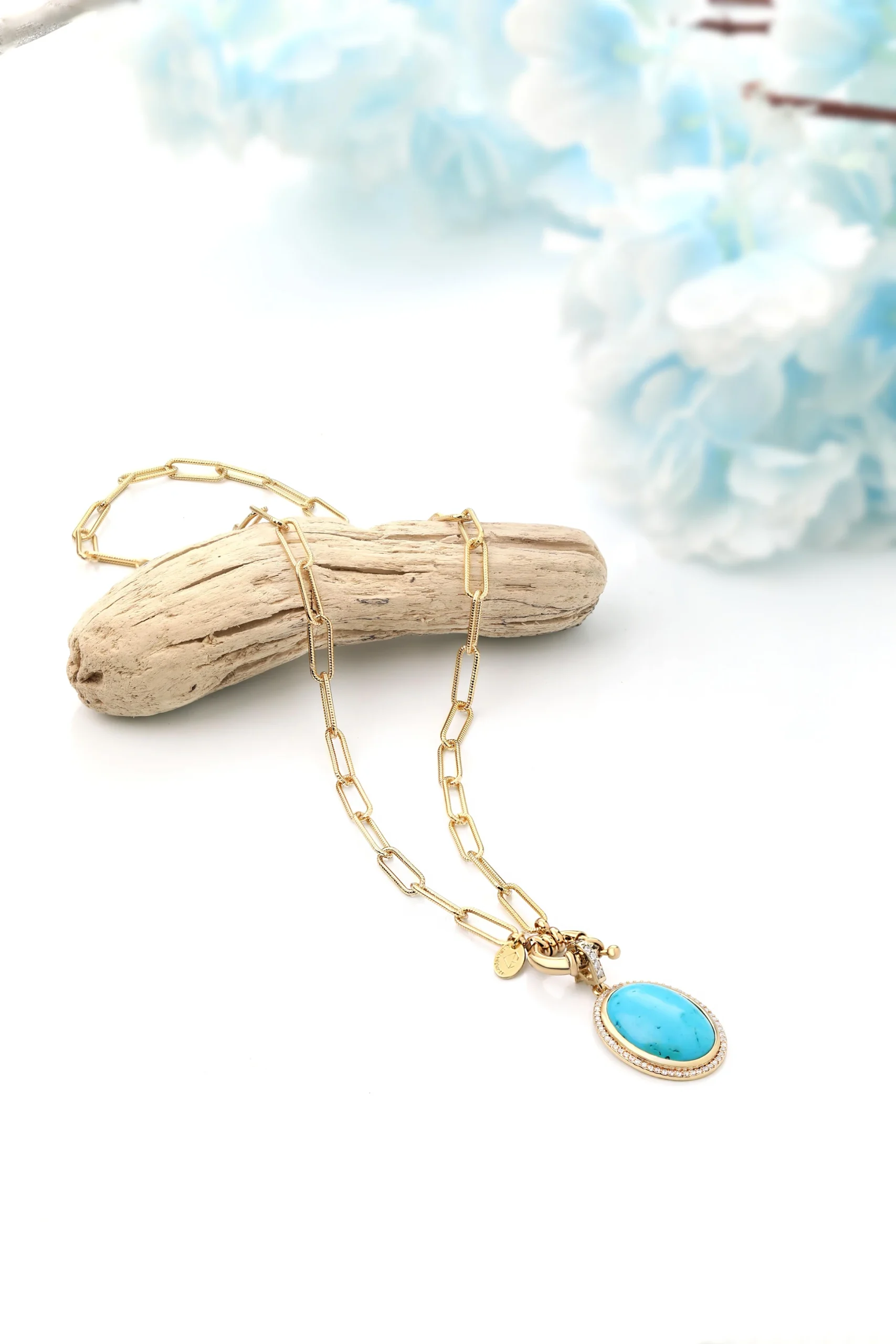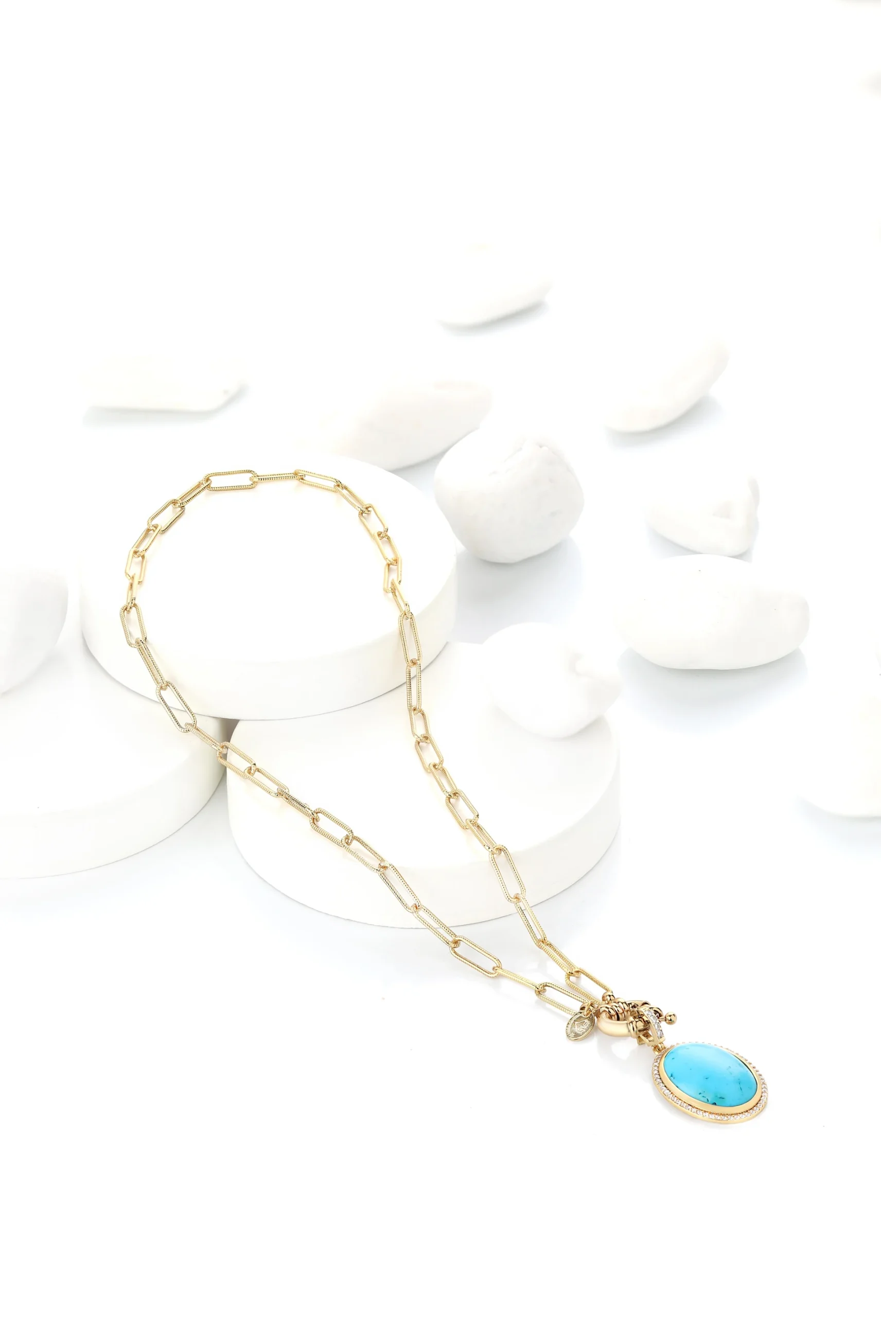 “Turkuazın huzur veren rengi ve zarif zincir tasarımıyla stilinizi güçlendirin. Hem şıklığı hem de enerjisiyle her anınıza özel bir dokunuş katacak.”