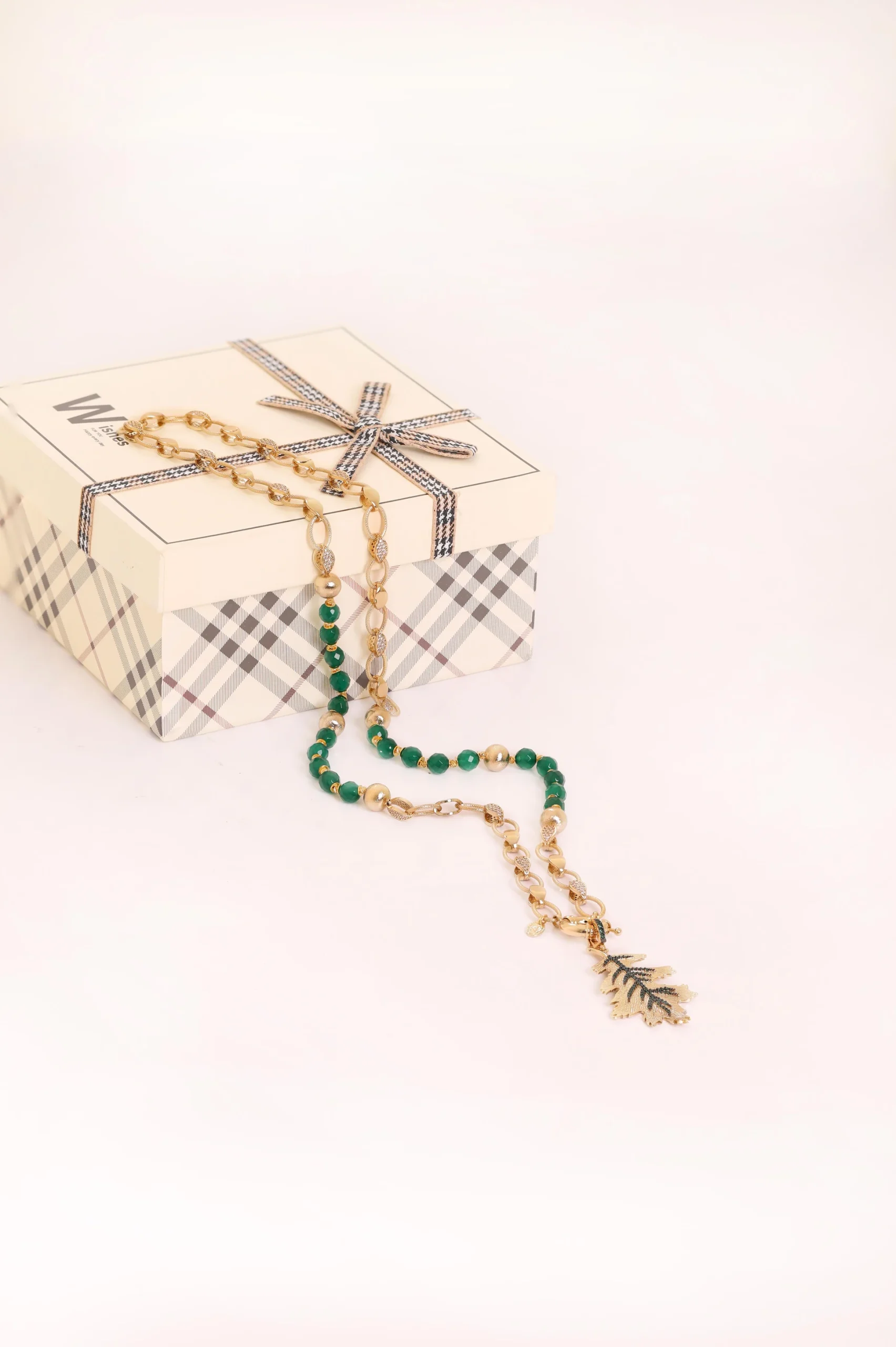 “Doğanın gücü ve zarafeti bir arada: akik taşı kolye. Akik taşının sıcak tonları ve yaprak figürünün zarif detayları, doğal bir şıklık sunuyor. Her anınıza doğadan ilham alarak zarafet katacak bu kolye, stilinizi tamamlayacak mükemmel bir parça…”