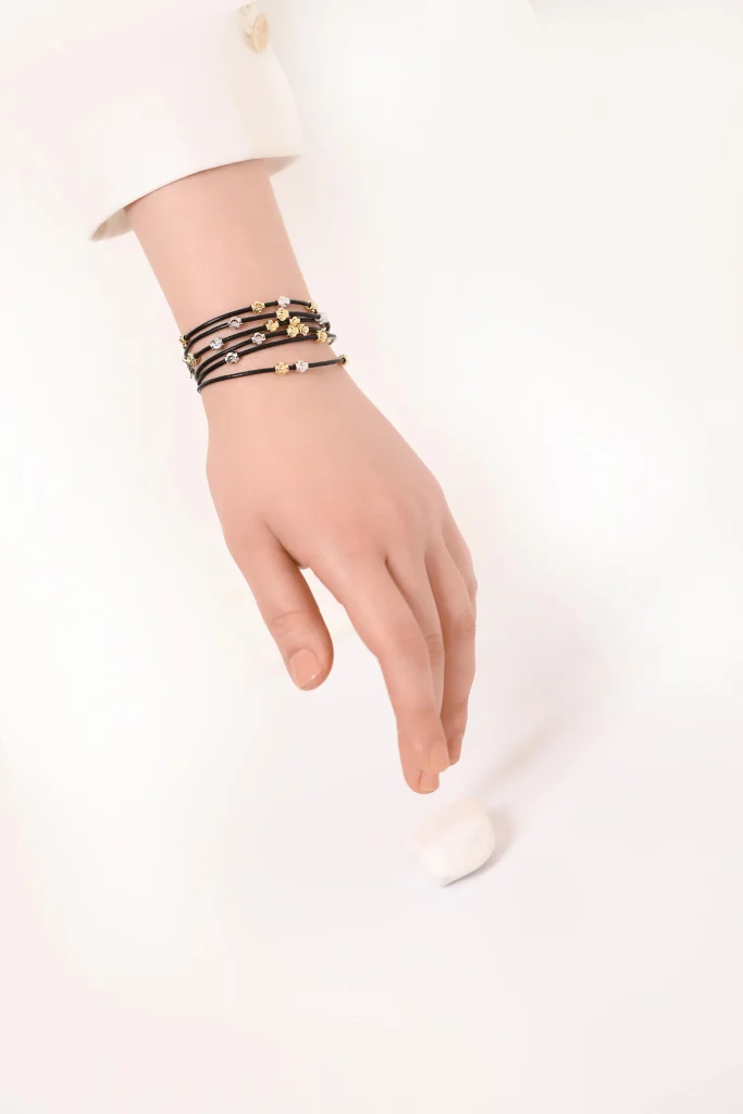 “Yeşilin tazeliği ve çiçek figürünün zarif dokunuşu bir araya geliyor. Bu özel tasarım deri bileklik, doğanın enerjisini bileğinizde taşıyor. Hem şıklığı hem de özgünlüğüyle tarzınıza canlılık ve zarafet katarken, her adımınızda doğanın gücünü hissedeceksiniz.”