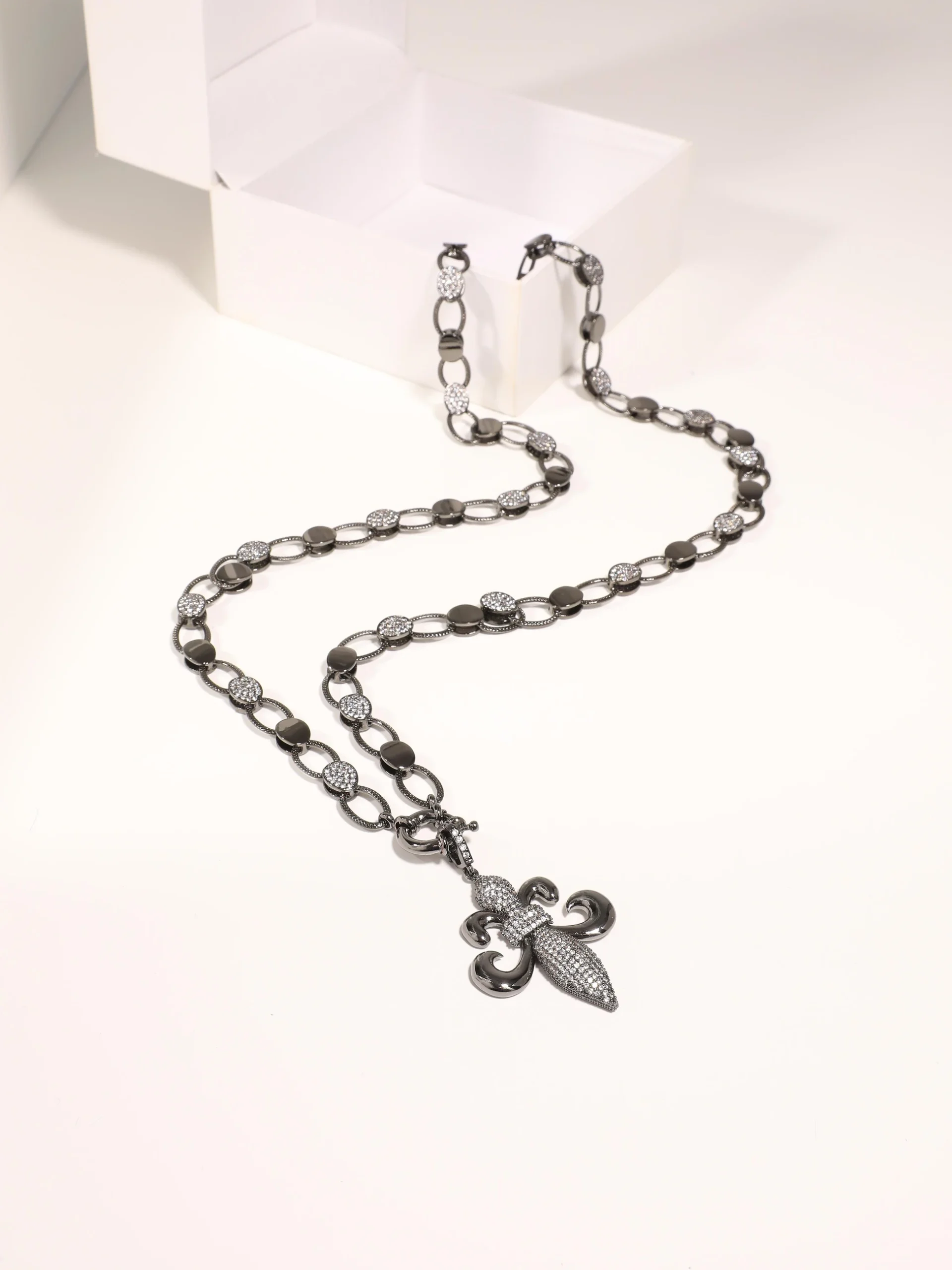 Zambak Uçlu Rodyum Zincir Kolye